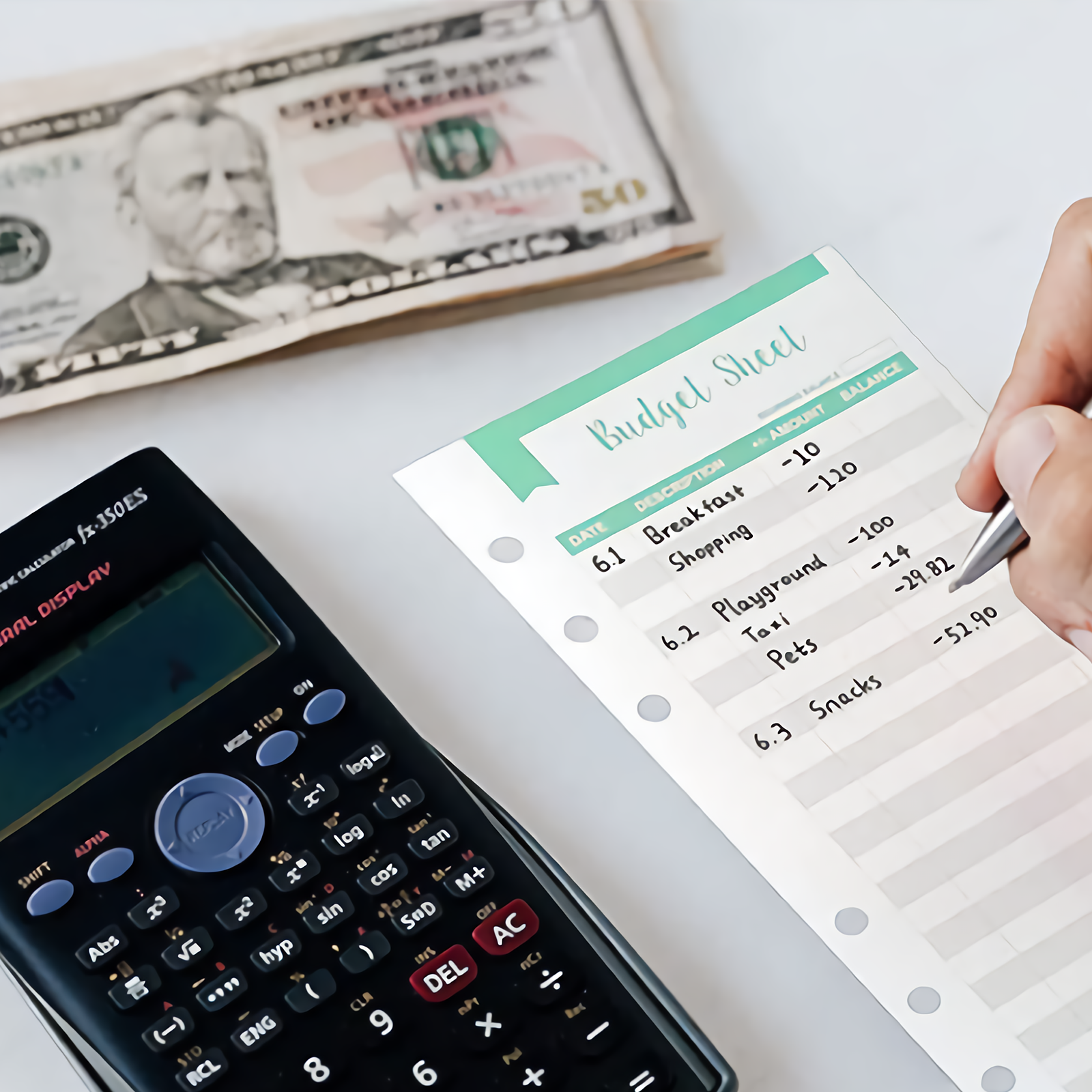 A6 expense budget sheet: 6.7 x 3.4 inch/ 17 x 8.7 cm