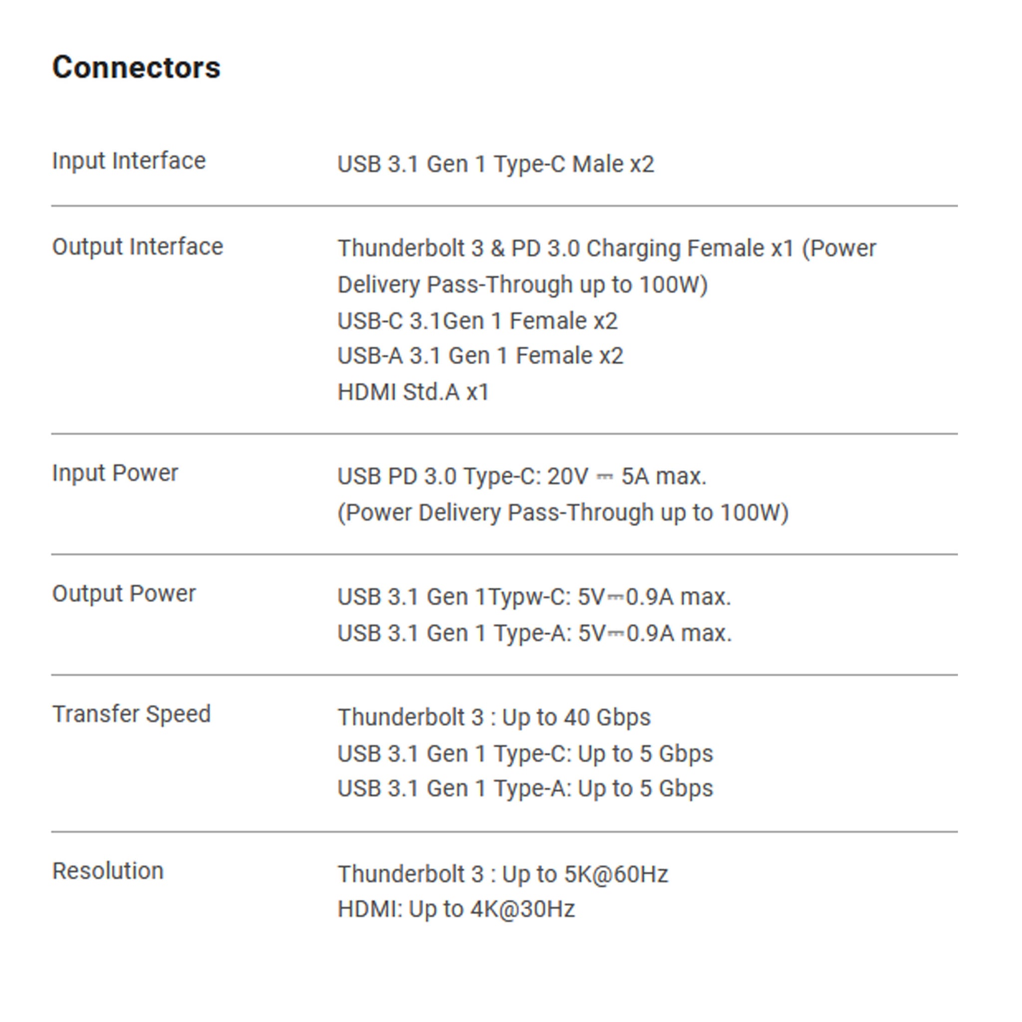 THUNDERBOLT 3 support including 40Gbs data transfer, 8K video output or charging with 100W USB PD 3.0.