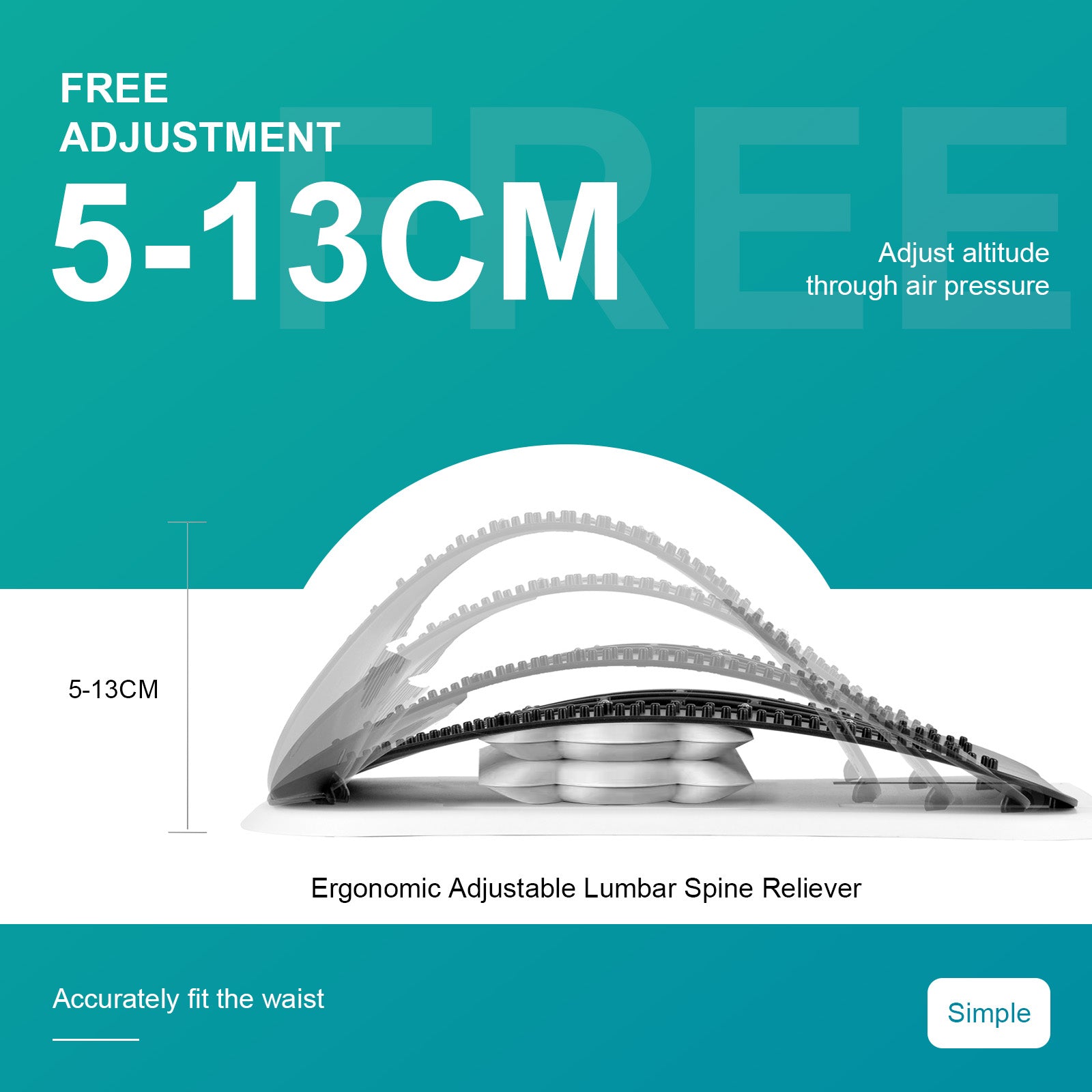 Adjustable Air Inflation – Personalize the lumbar curvature via manual air pump for optimal traction.
