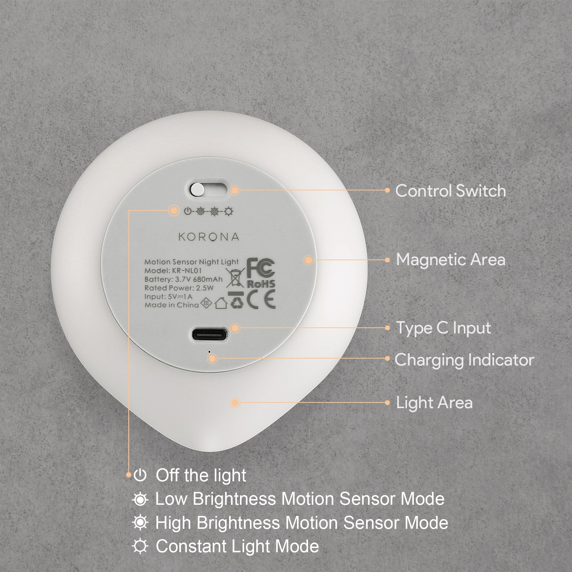 AIPOWER Motion Sensor Night Light USB-C Rechargeable Closet Light 4 Packs