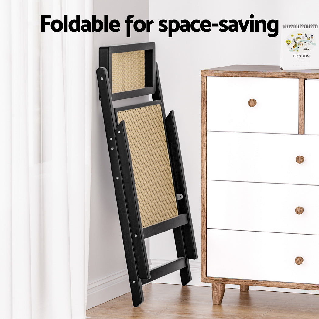 Artiss 2x Dining Chairs Wooden Rattan Foldable Black