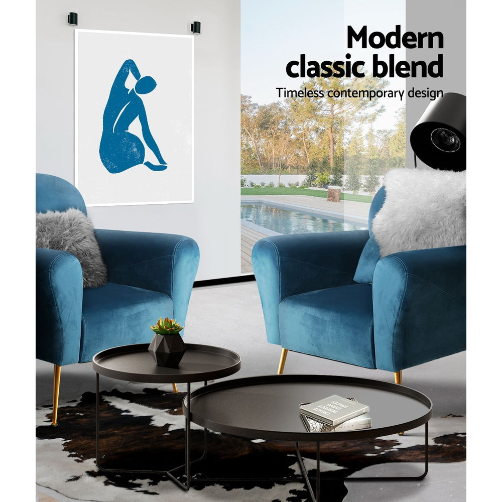 Artiss Armchair Lounge Chair Accent Chairs Armchairs Sofa Navy Velvet Cushion