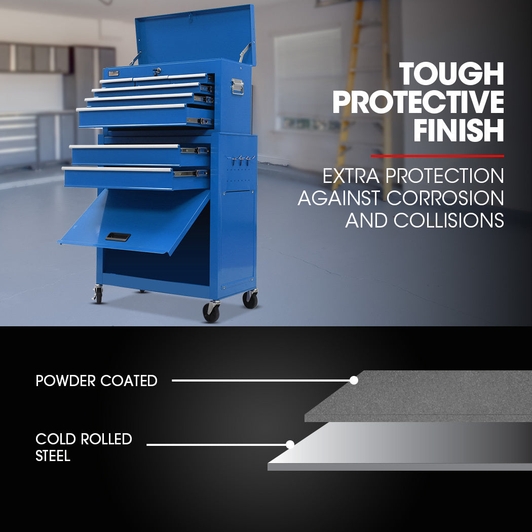 BULLET 8 Drawer Tool Box Cabinet Chest Storage, Toolbox Garage Organiser Set, Blue