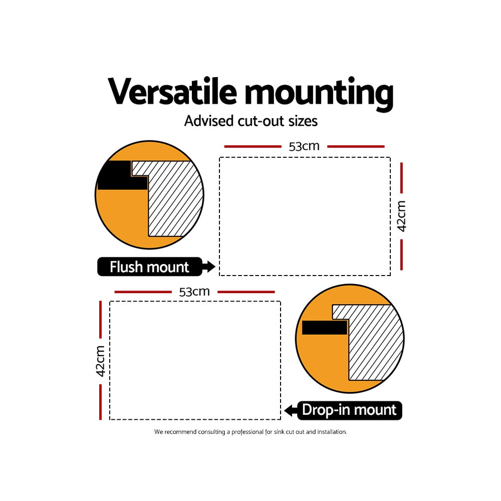 Cefito Kitchen Sink 55X45CM Stainless Steel Basin Single Bowl Extra Hole Silver