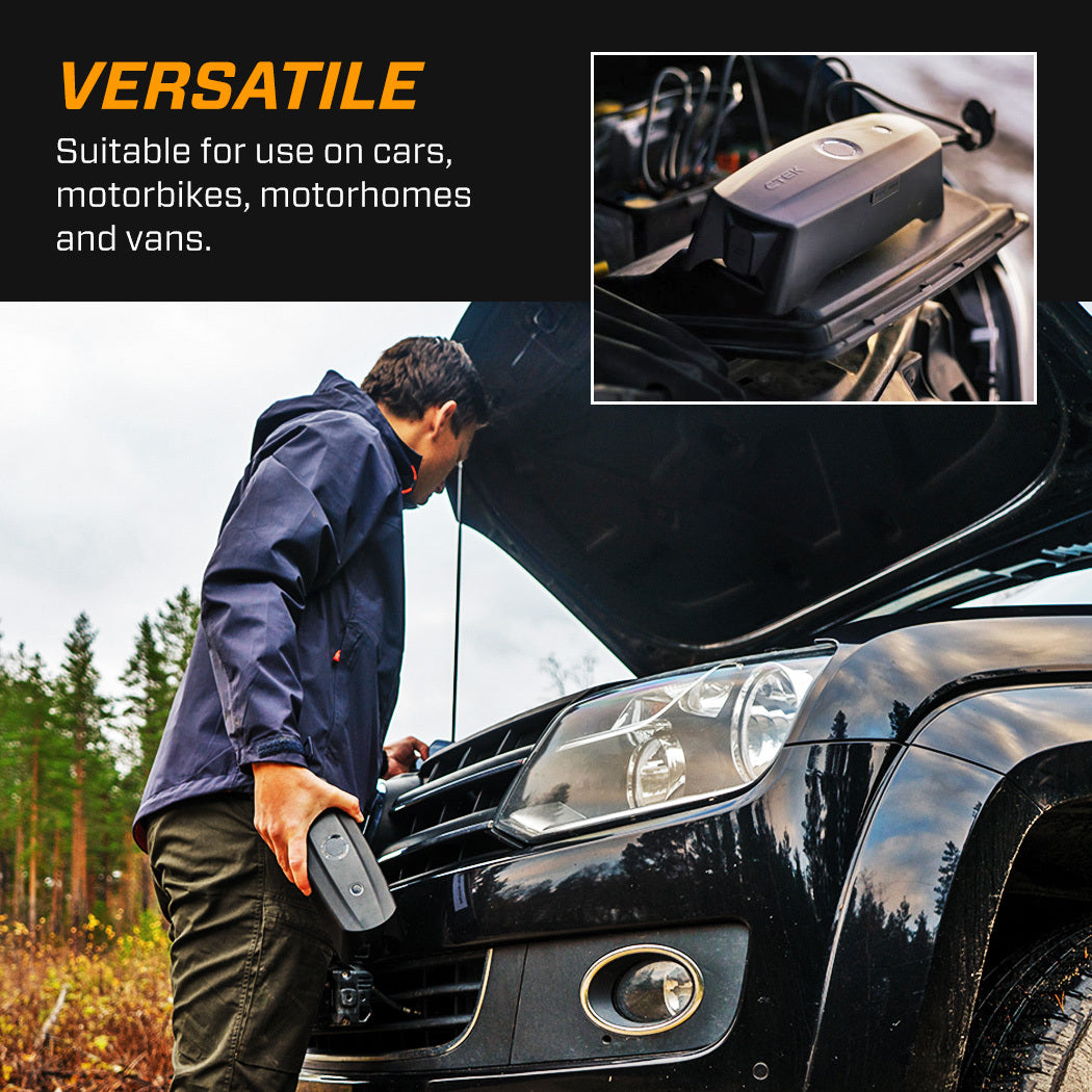 The CS FREE is the world's first fully portable battery charger and maintainer with Adaptive Boost to get your flat battery going quickly and safely – without the need for mains power. In other words, it's a 12V power bank for your vehicle that works with both lead-acid and lithium (12V LiFePO4) batteries. Plus, it'll keep your portable tech, like phones, laptops cameras topped up too. So simply charge it up, take it with you and use it anywhere!