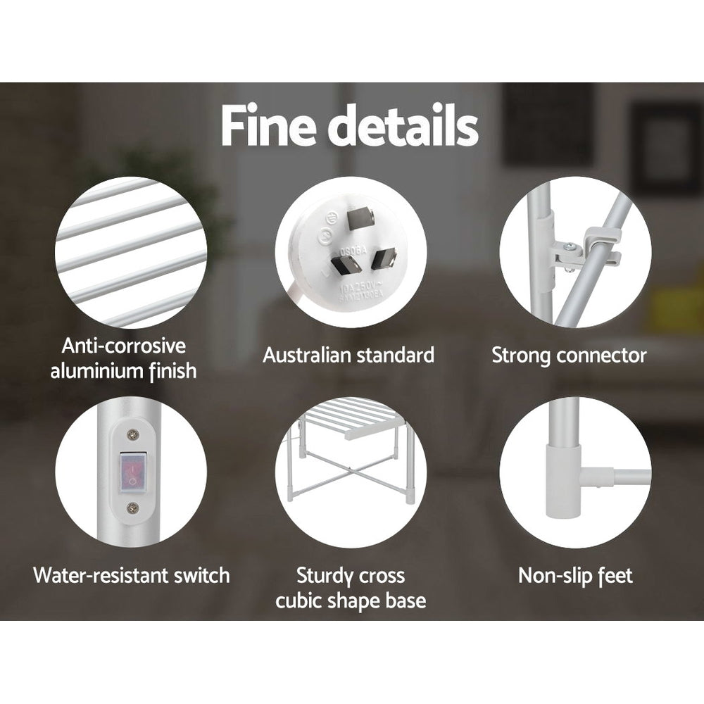 Devanti Electric Heated Towel Rail Rack 30 Bars Foldable Clothes Dry Warmer