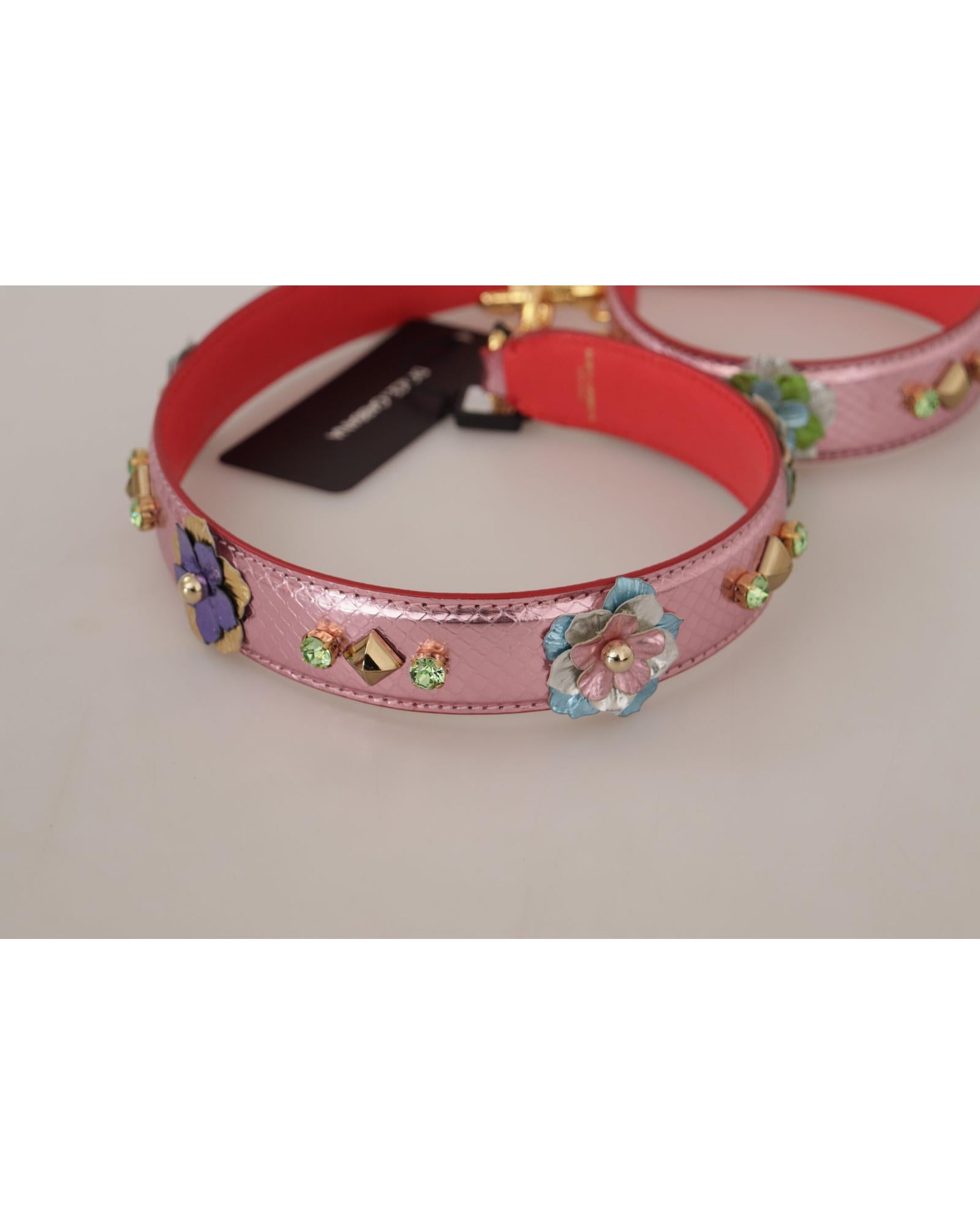Dolce & Gabbana Women's Metallic Pink Leather Studded Shoulder Strap - One Size
