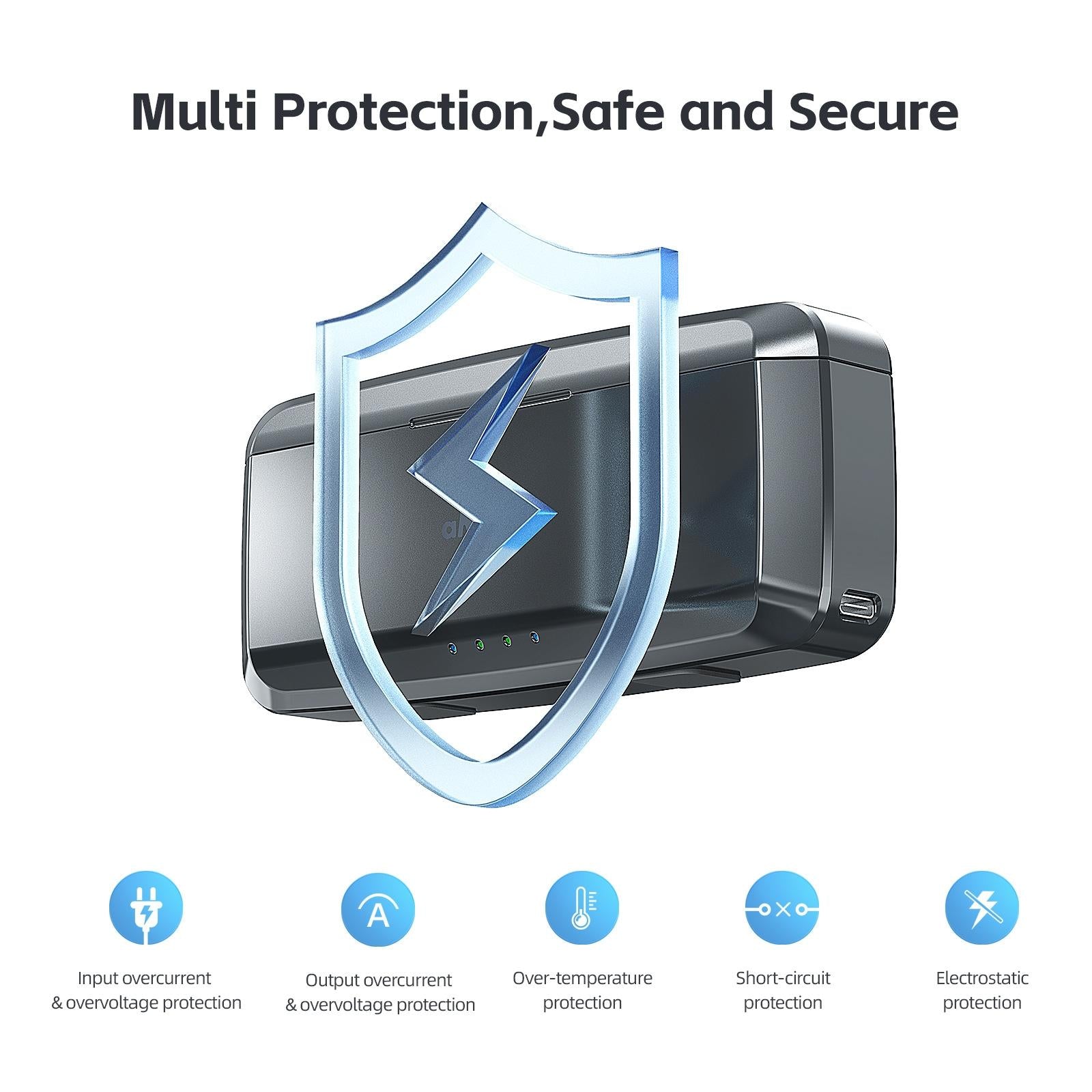 • Multi-protection, over-current/over-voltage/over-temperature/short-circuit/electrostatic protection