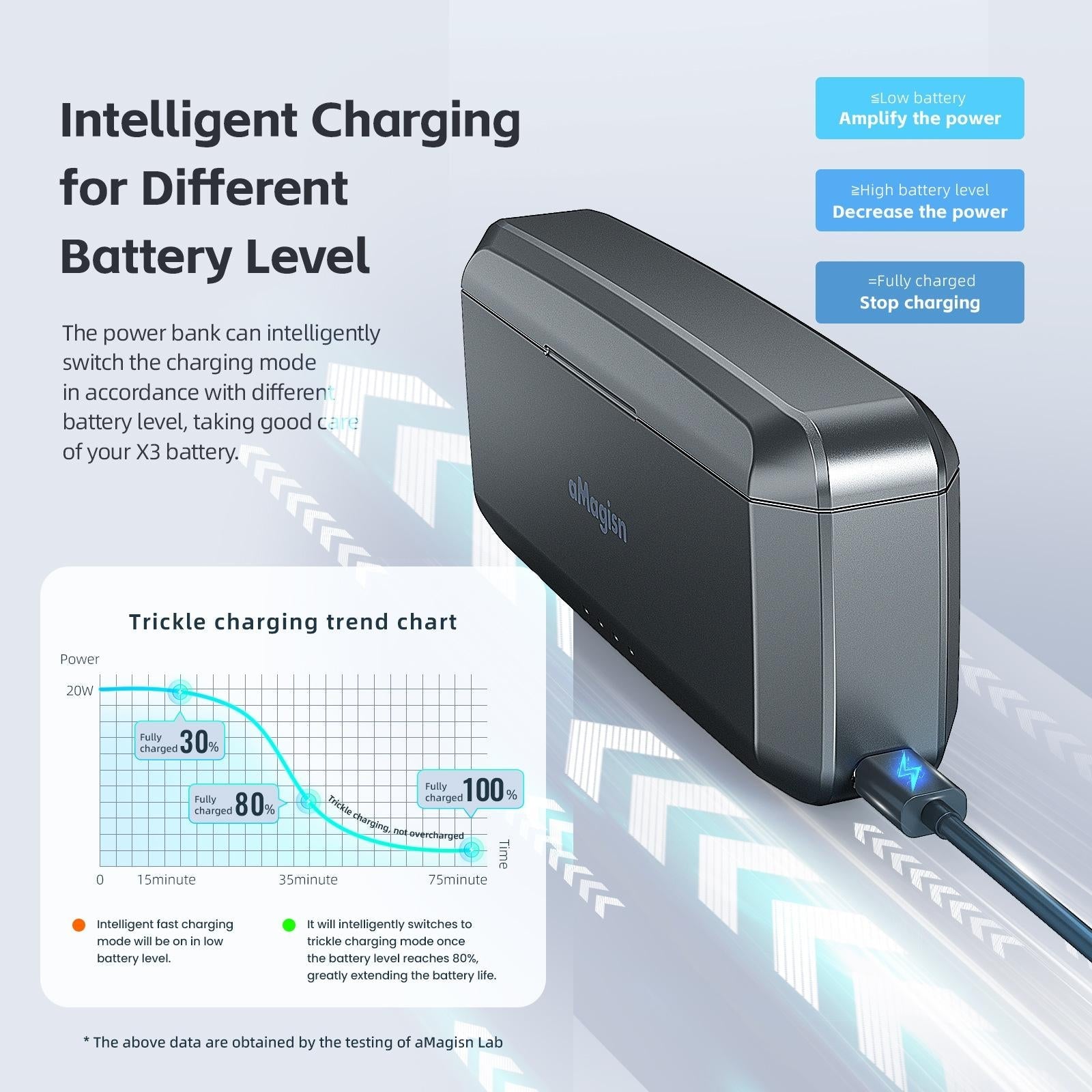 • Intelligent switching of charging modes according to different battery power states