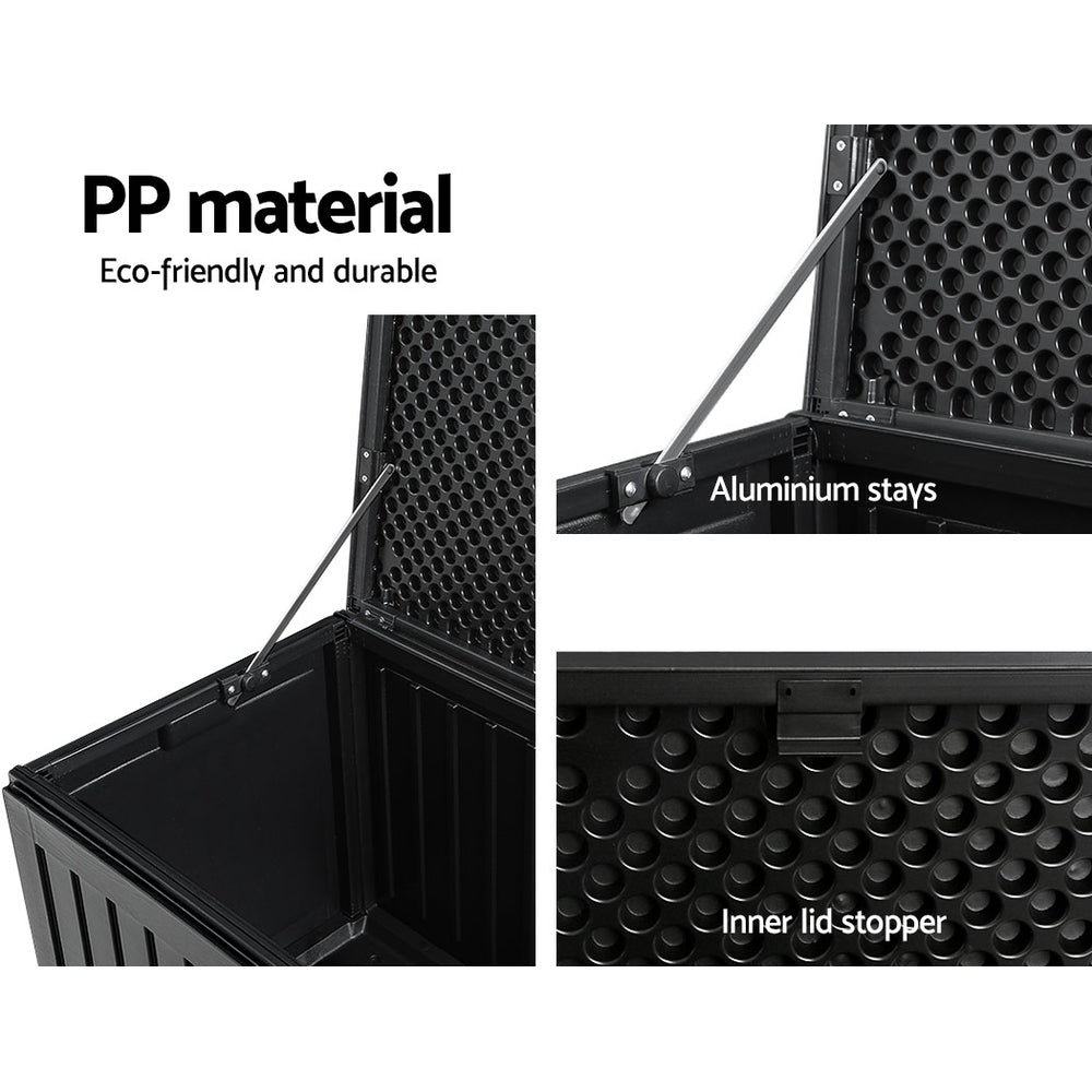Gardeon Outdoor Storage Box 270L Container Lockable Garden Bench Tool Shed Black