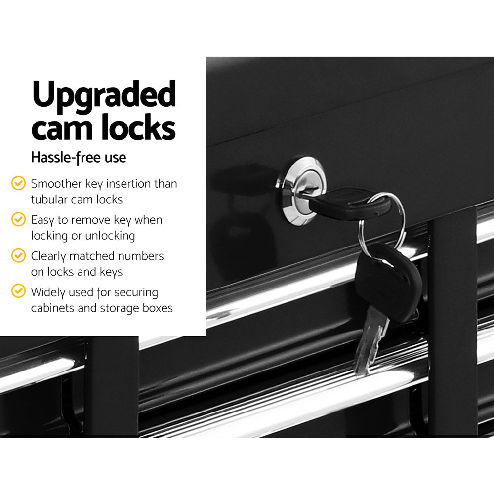 This robust, multi-drawer Giantz Tool Trolley is an essential for any workshop. Crafted from durable steel, it features smooth ball-bearing slides for easy access and a secure lock system for safety. Its spacious design includes varying drawer sizes to accommodate tools of all shapes, complete with non-slip liners. The chest is also mounted on omni-directional castors with locakble front wheels, ensuring a smooth maneuverability and stable positioning. Sleek and functional, it's perfect for organizing and protecting your valuable tools.