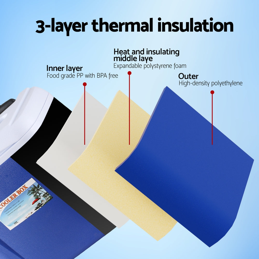 Glacio 38L Portable Ice Cooler Box With Wheels Camping Fridge