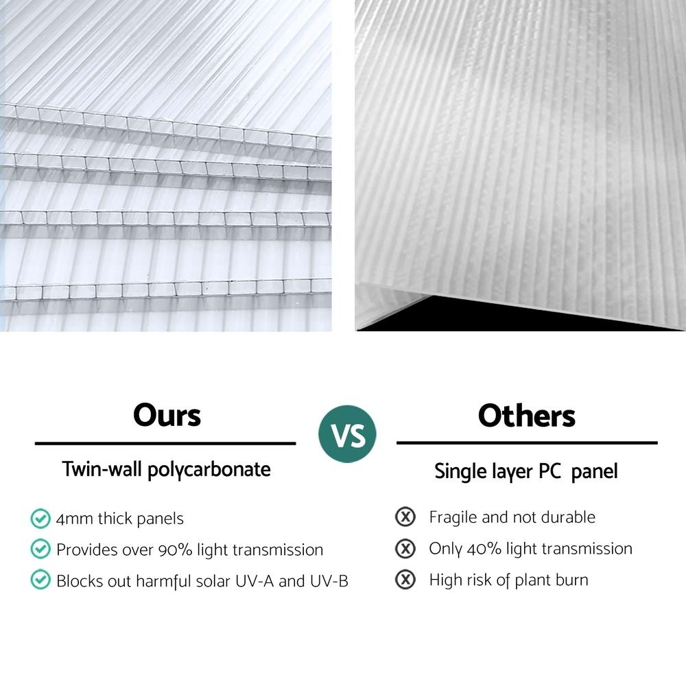 Green Fingers Greenhouse 2.48x1.89x2M Aluminium Polycarbonate Green House Garden Shed