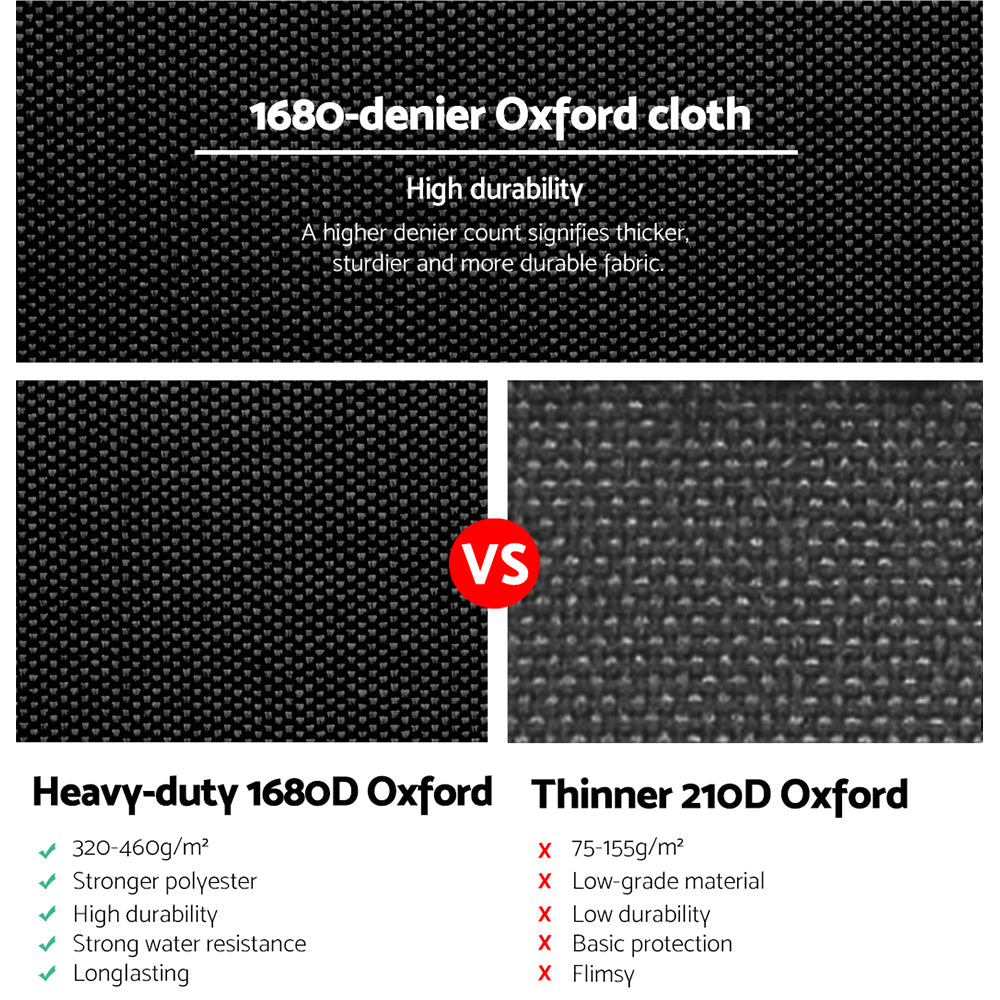 Fabric material: 1680D oxford (exterior) and 1680D diamond texture Mylar (inner)