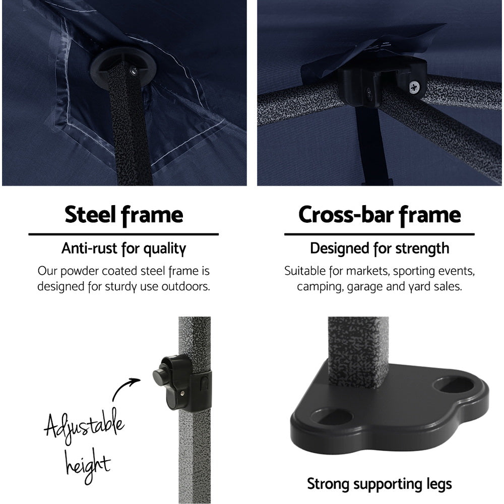 Instahut Gazebo Pop Up Marquee 3x3 Folding Tent Gazebos Camping 500D Oxford Navy