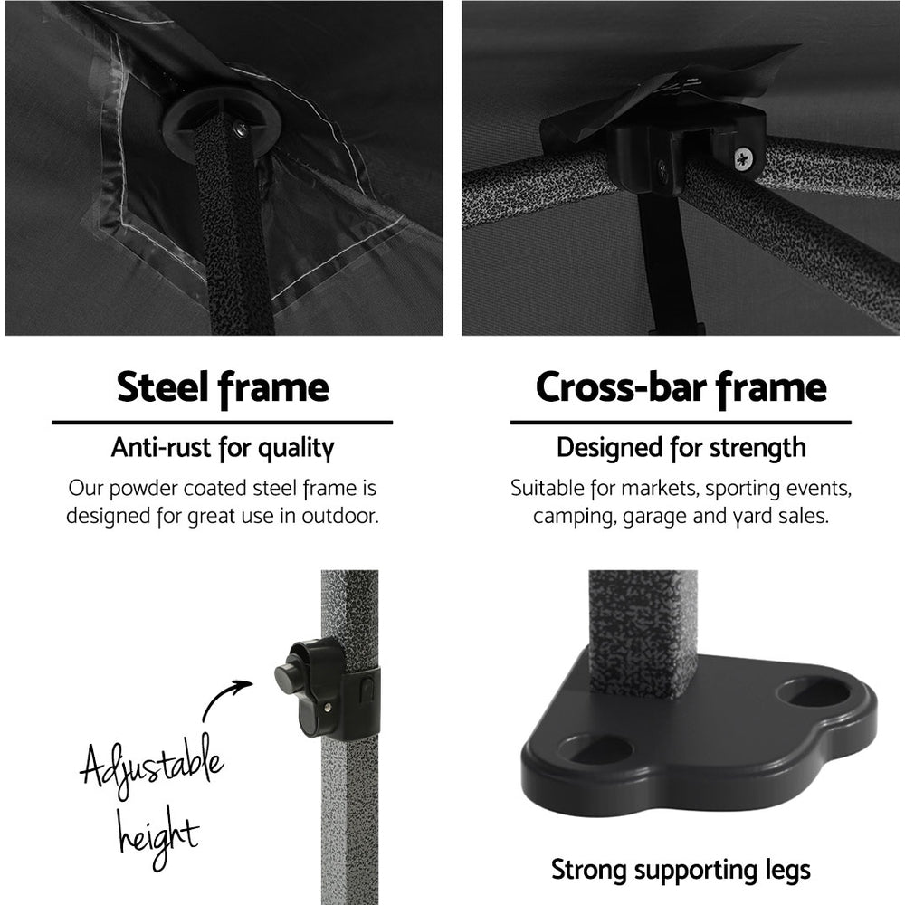 Instahut Gazebo Pop Up Marquee 3x6 Folding Tent Wedding 500D Camping Black