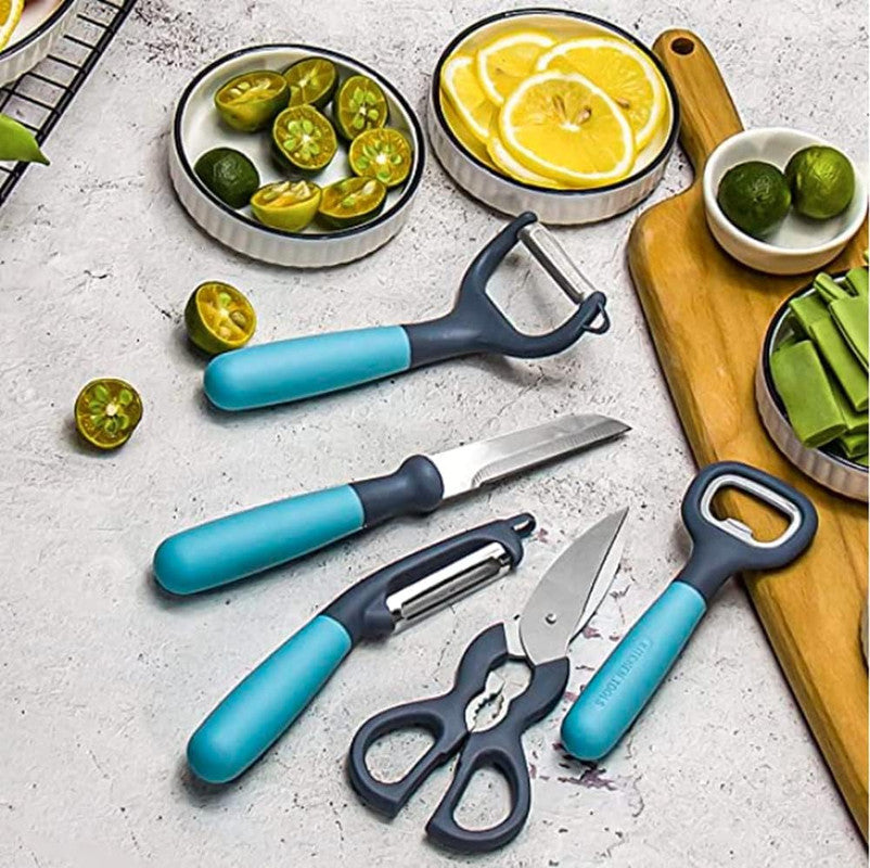 Kitchen Knife Scissor Corkscrew Peeler Tool Set with Stand Holder