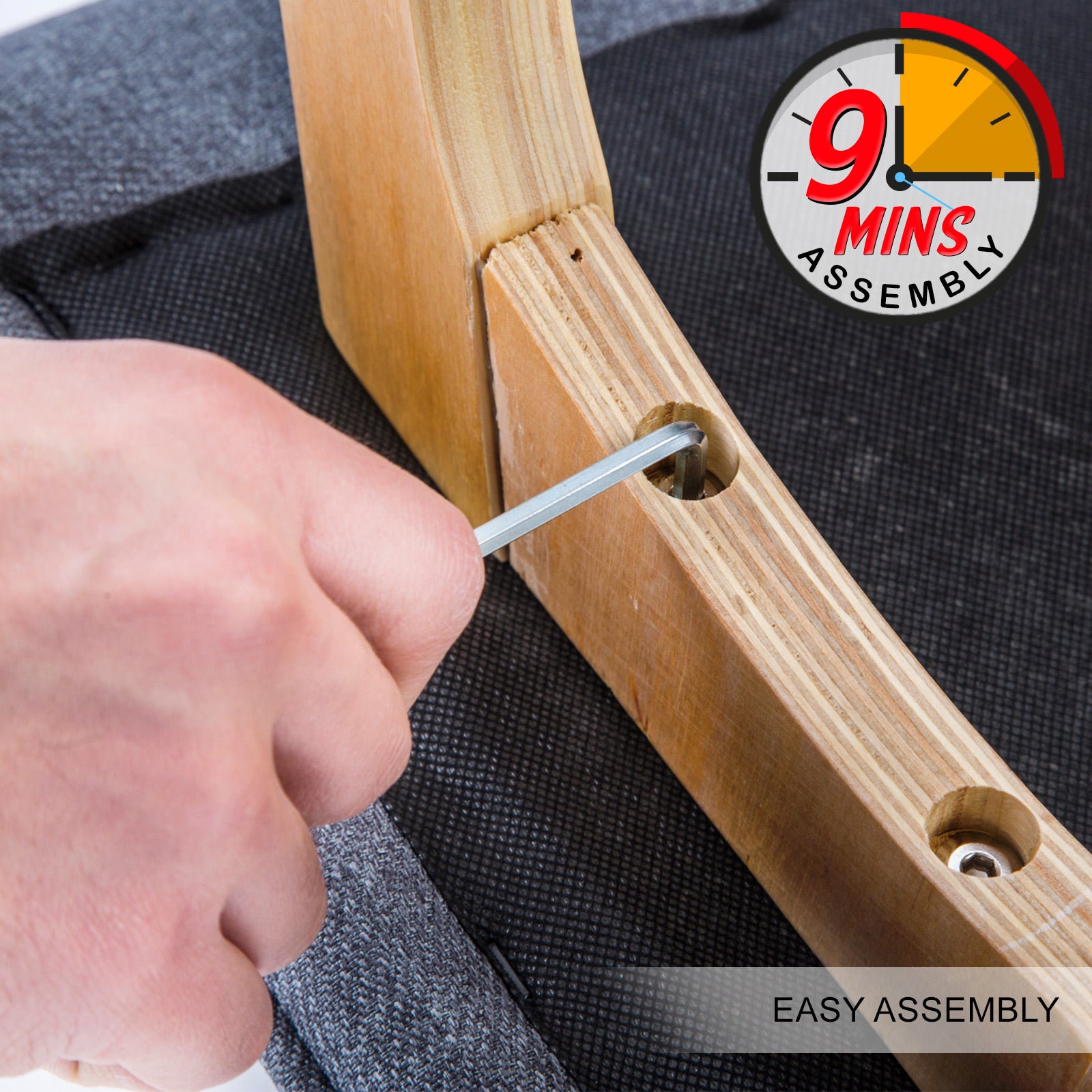 To ensure safety, the legs are tapered outwards to form a slight A-shape, so that the bar stool is well-balanced without occupying too much space. Additionally, the legs are made of solid plywood with a footrest to ensure extra sturdiness and support. This does not mean comfort is sacrificed as the seat itself is upholstered with fabric. Stool legs are also equipped with anti-slip protectors to minimise scratches onto wooden and tile floors. To give you a peace of mind, the bar stool will only take you approximately 9 minutes to assemble.