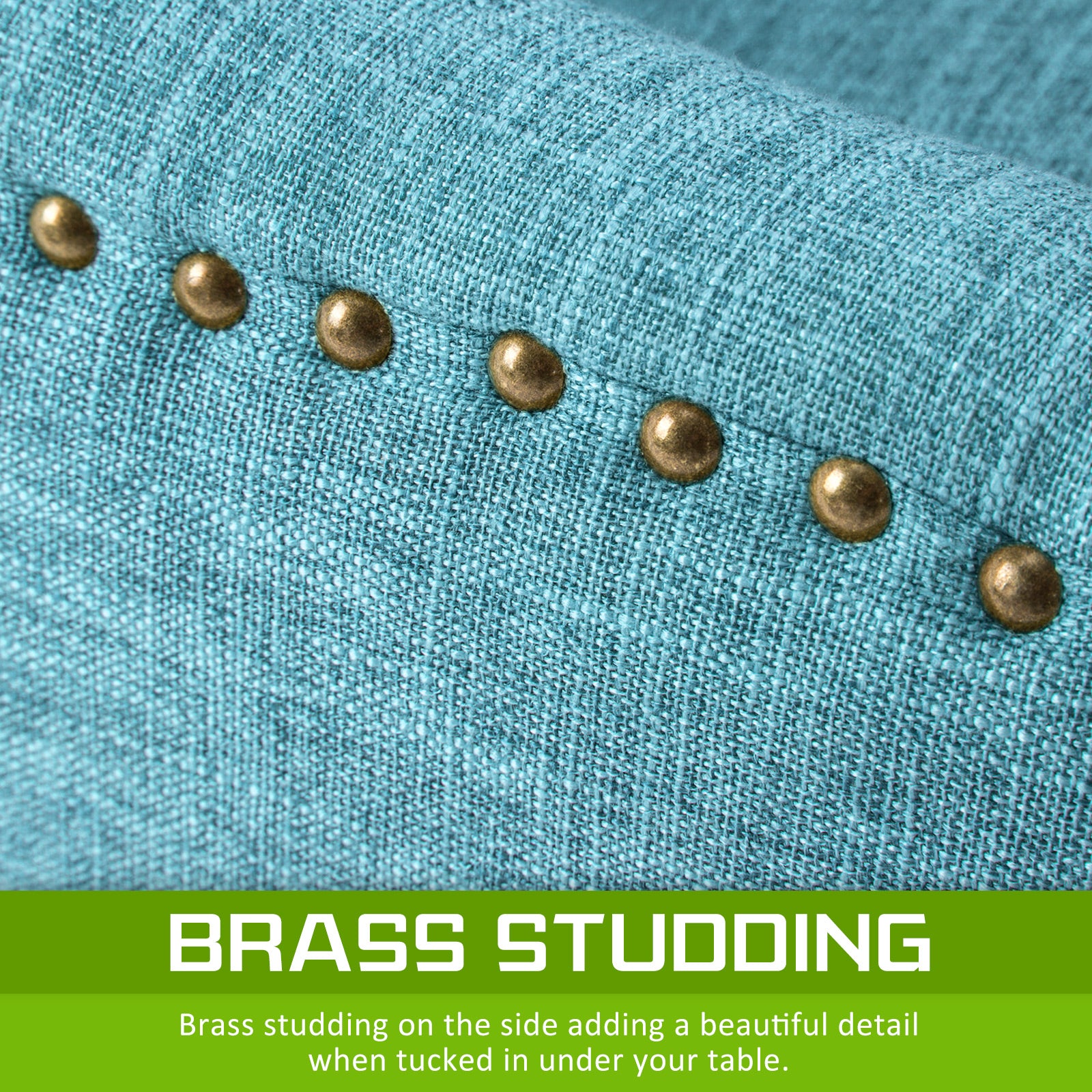Upholstery Fabric: High-quality linen fabric with brass studs