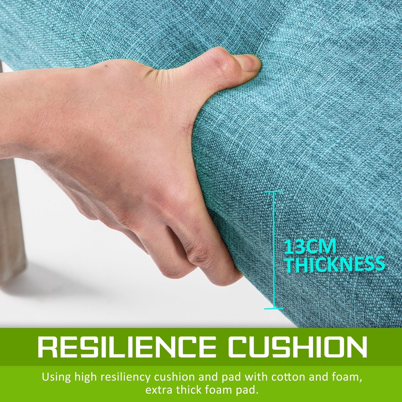 - 13cm thick seat cushioning with high resilience foam