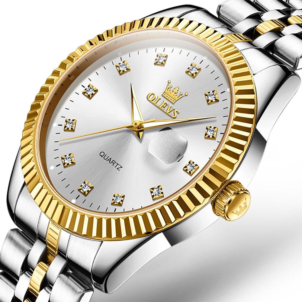 Men Luminous Waterproof Quartz Watch with Diamond Accents - Gold