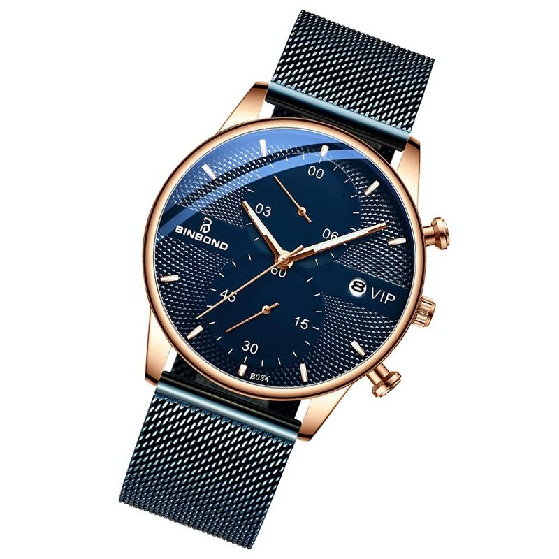 Men Multifunctional Luminous Quartz Watch - Business Style - Blue Mash Rose Shell Blue Surface
