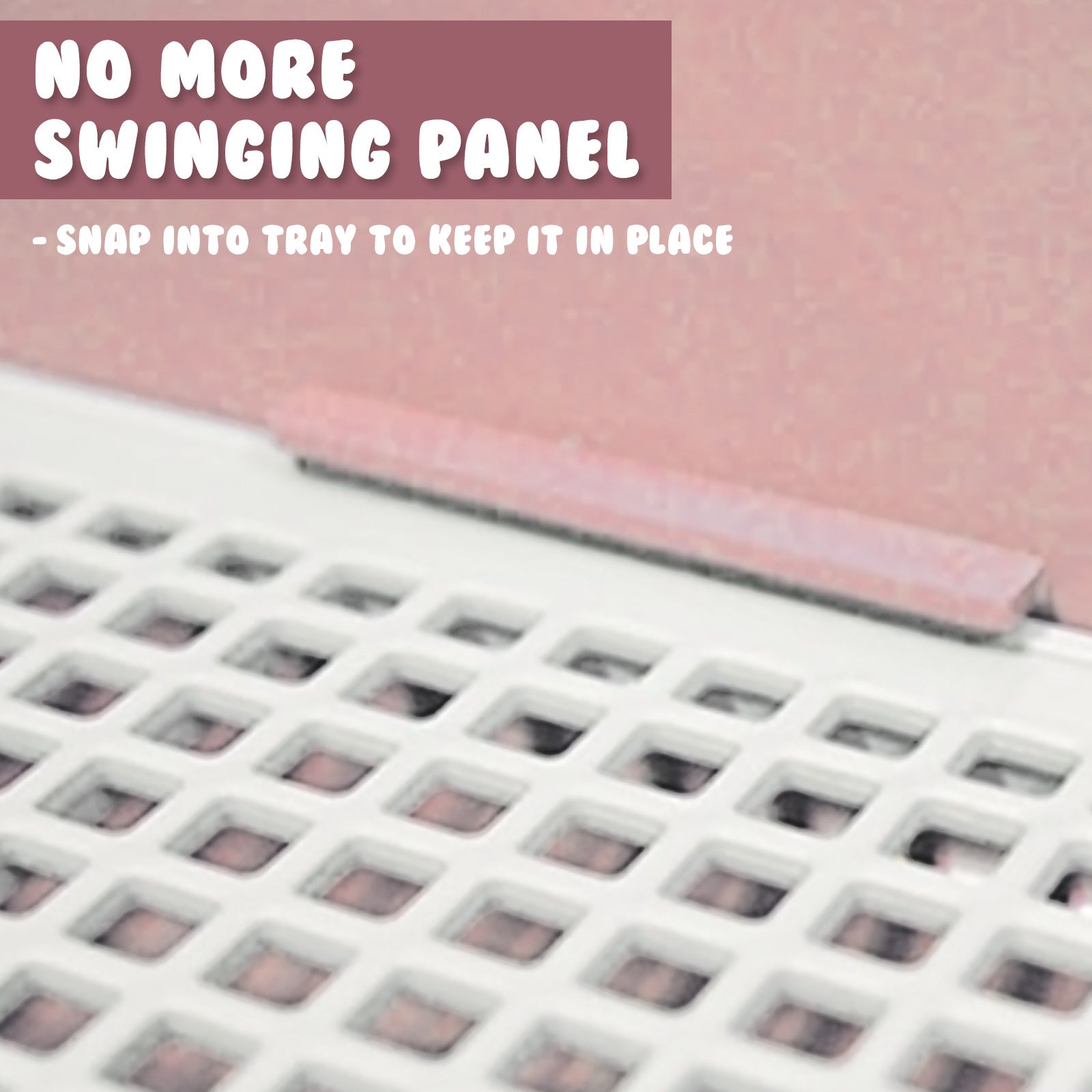 NO MORE TORN PADS ROLLING AROUND AND SWINGING PANEL: Mesh Panel is very easy to take on and off and prevents puppies from ripping apart pads or newspapers! The tray is always kept in place as there is a holder to fit it.