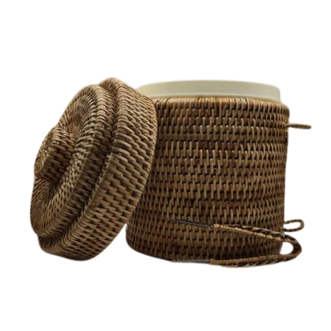 The Rattan Ice Bucket with Matching Tongs - Natural is the perfect blend of style and function. Handwoven from natural rattan, this piece not only keeps your ice chilled but also adds a warm, rustic touch to your hosting setup, whether it's an outdoor BBQ or an indoor dinner party.