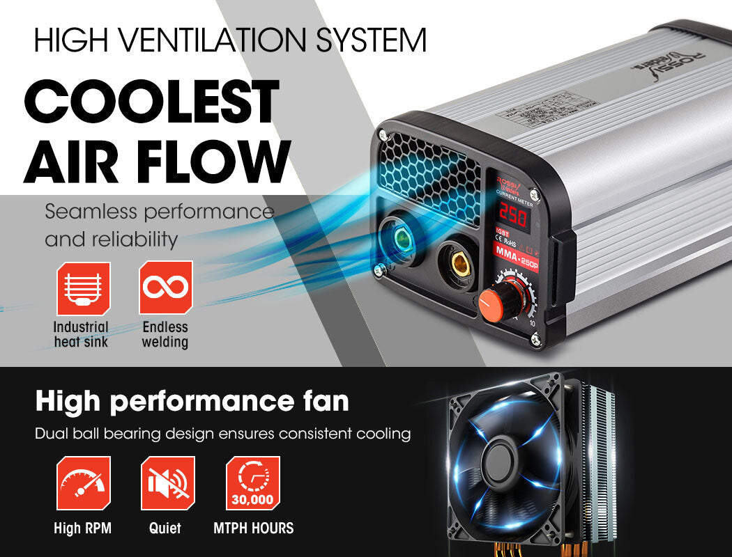 ROSSI 250 Amp Ultra-Portable Welder, MMA ARC Stick DC iGBT Inverter Welding Machine, 15A Plug