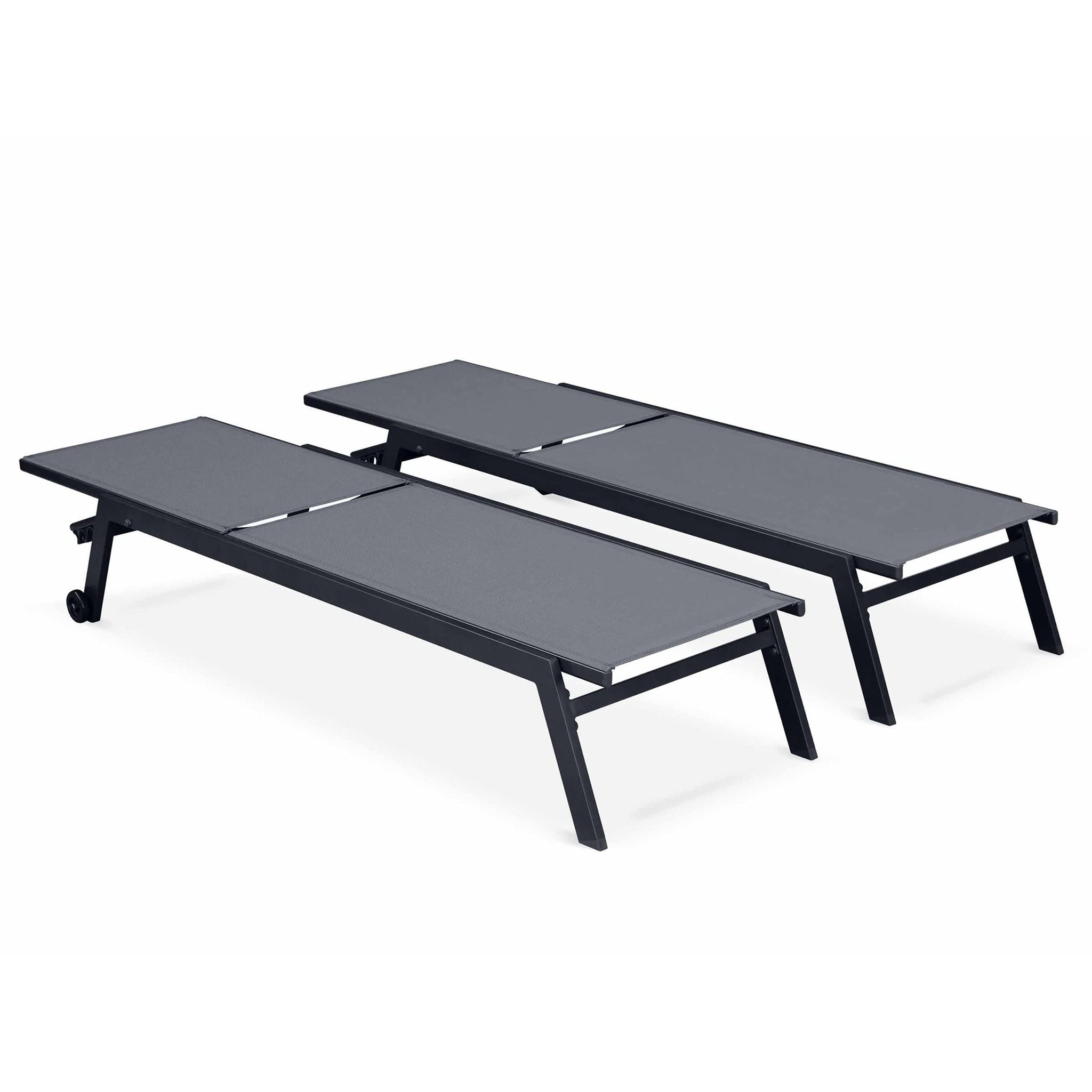 The adjustable backrest offers five reclining positions to suit your relaxation needs—whether you prefer to sit upright or lay completely flat. Equipped with smooth wheels, the loungers can be easily repositioned to follow the sun. Lightweight yet sturdy, these loungers are stackable, making storage convenient and hassle-free.