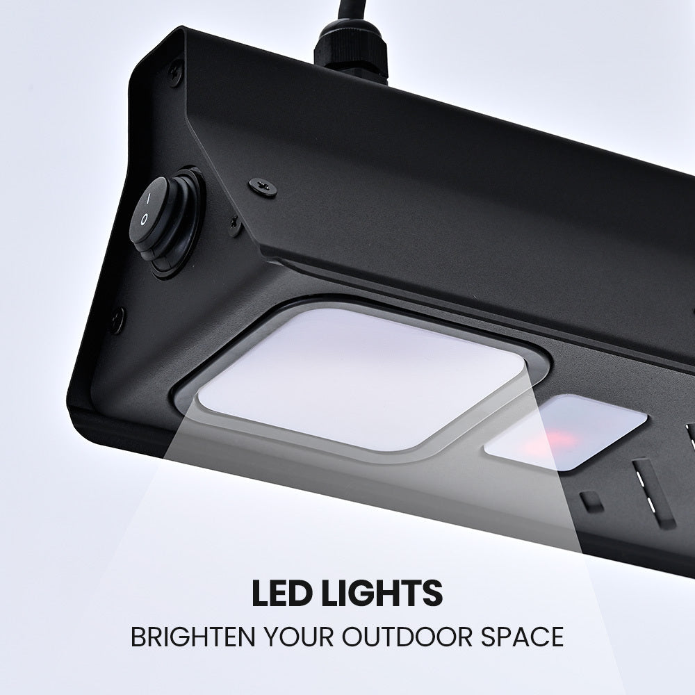 You have the option to add more light to your outdoor space with the lights which are controlled by the remote and Its sleek, long design integrates seamlessly into any outdoor décor, enhancing both functionality and aesthetic appeal. While it also includes a robust IPX4 water ingress rating, it should be installed out of direct rain. Choose this Thermomate 2000W Outdoor Heater for a reliable, efficient, and discreet heating solution throughout the cooler months.