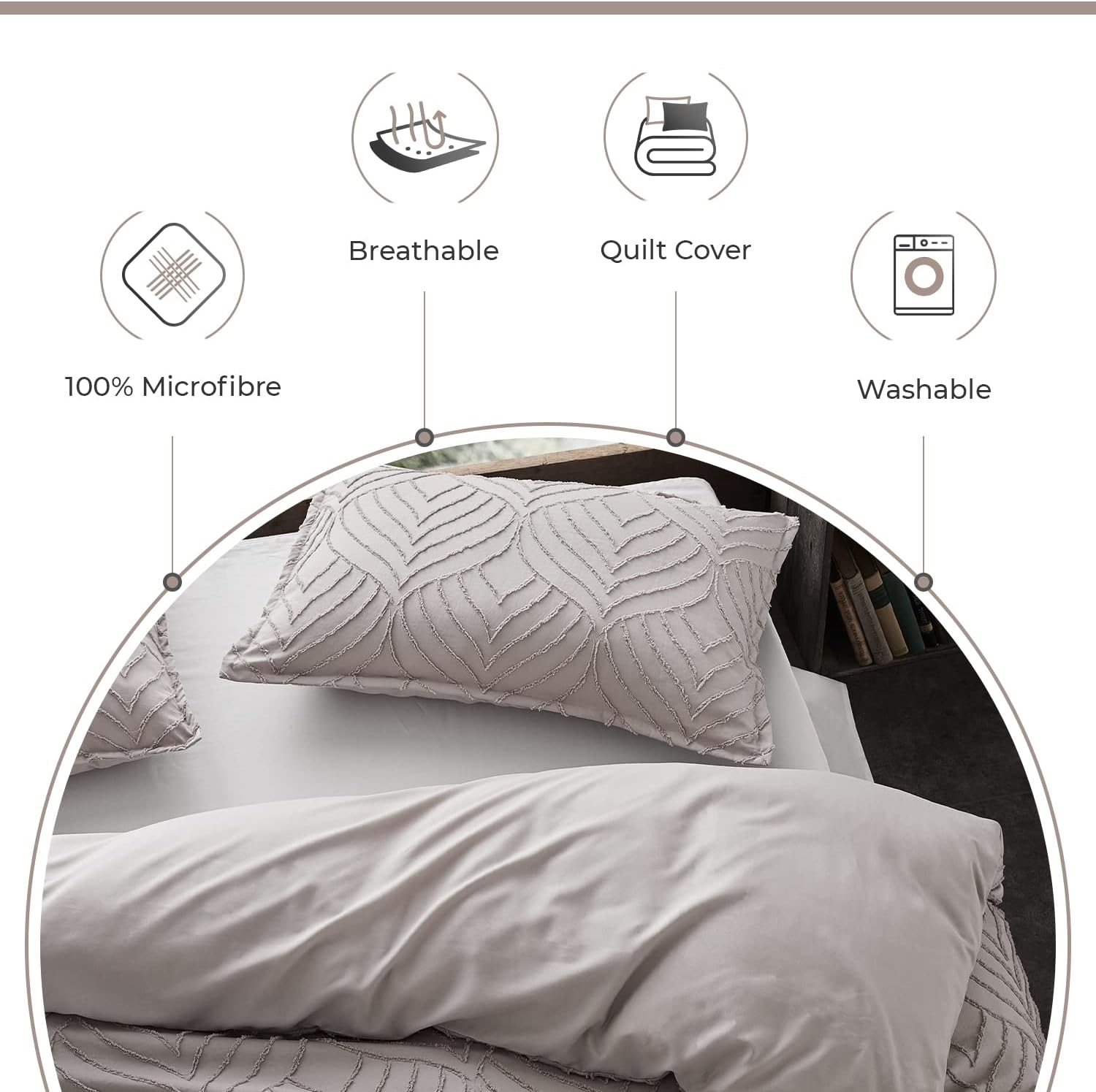 SOFT AND LUXURIOUS:This Microfibre Tufted Quilt Cover Embroidery Bedding Set is made of premium quality microfibre material that is ultra-soft and luxurious to the touch. The tufted design adds a unique and stylish texture to the bedding set.