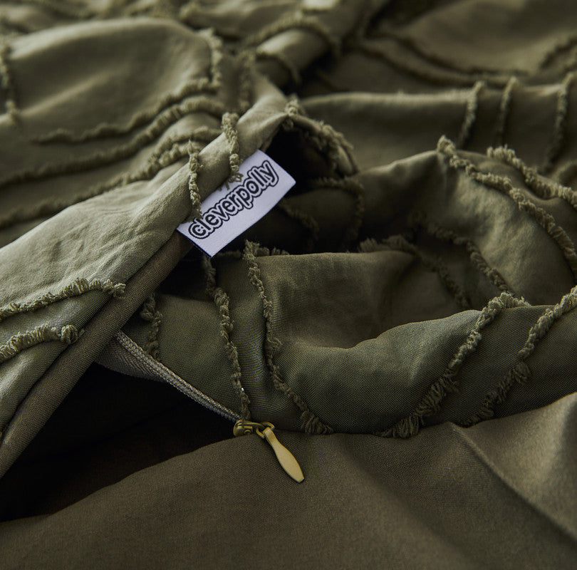 100% Premium Tufted Microfibre Quilt Cover Set - Ultra-Soft, Durable Embroidery Bedding Comforter Set - Machine Washable & Zipper Closure - Khaki Green - Single