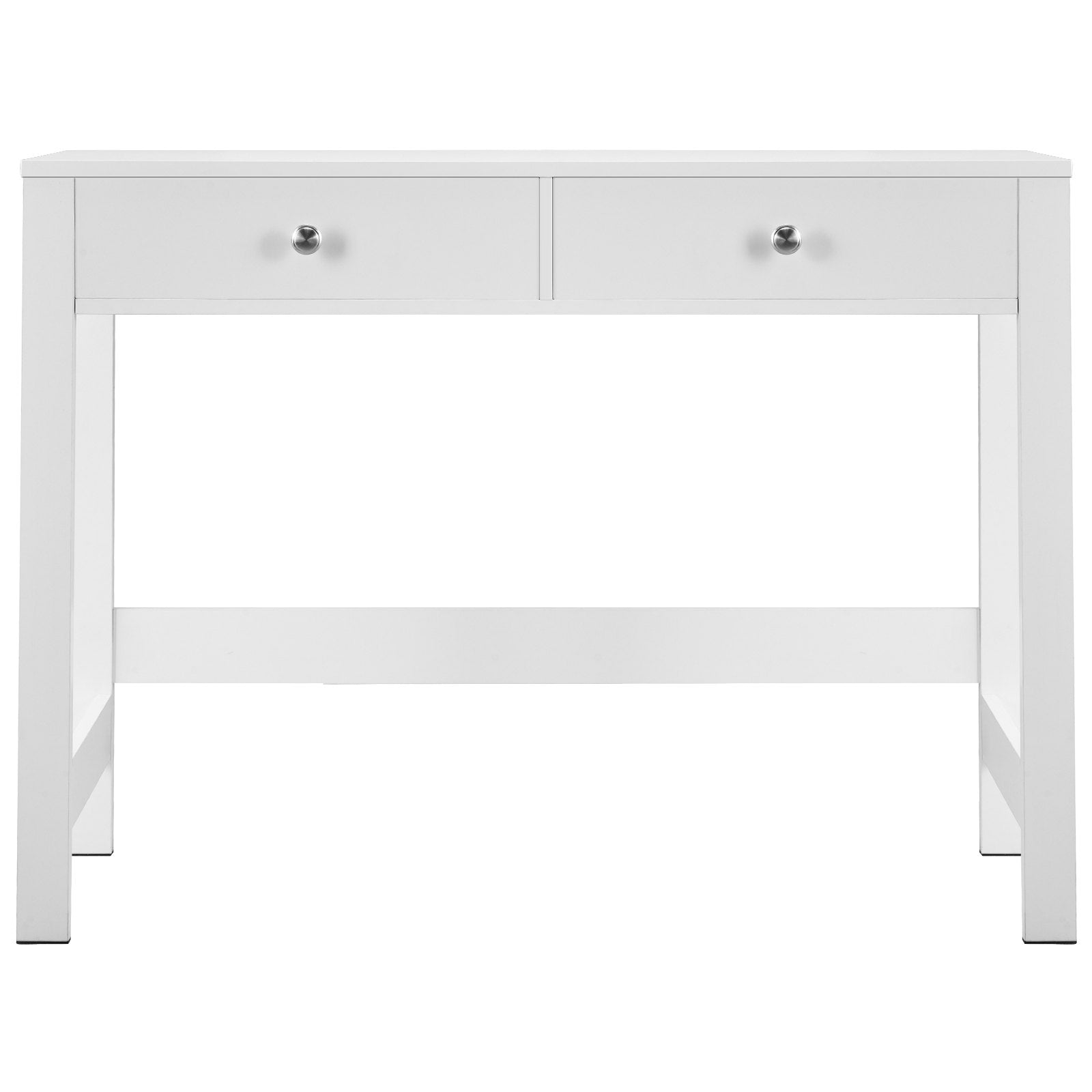 Featuring a double-sided melamine laminate finish and PVC edging, the desk with drawers surface is smooth and resistant to stains, requiring only a light wipe with a damp cloth to keep it clean.
