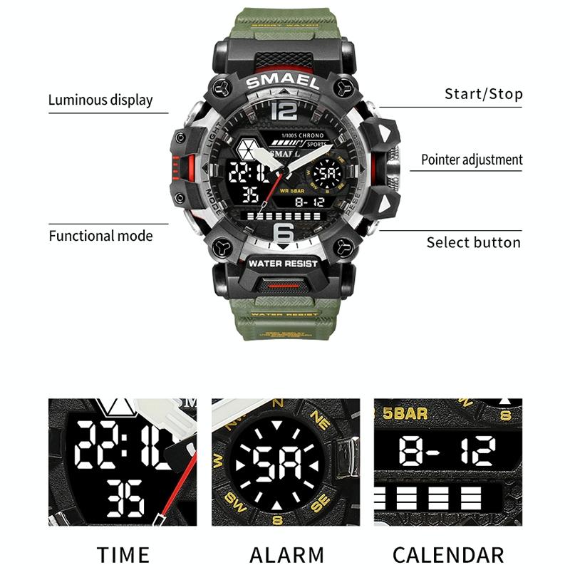 • 1 x 8072 Alloy Outdoor Multifunctional Electronic Men Dual Display Waterproof Watch