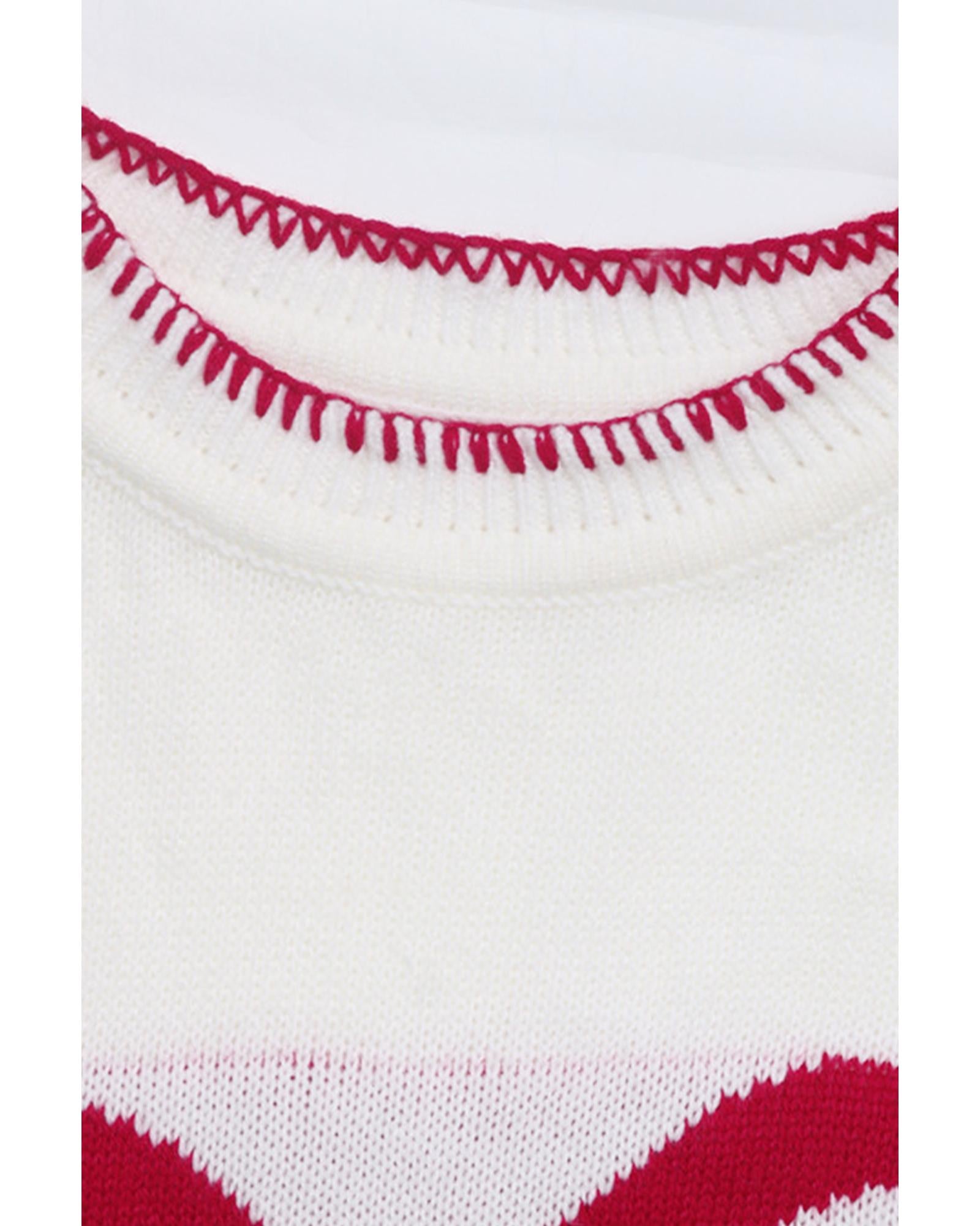 White Bow Pattern Contrast Trim Christmas Loose Graphic Sweater - S