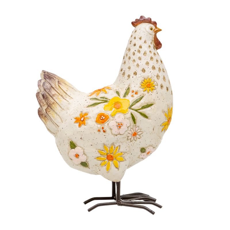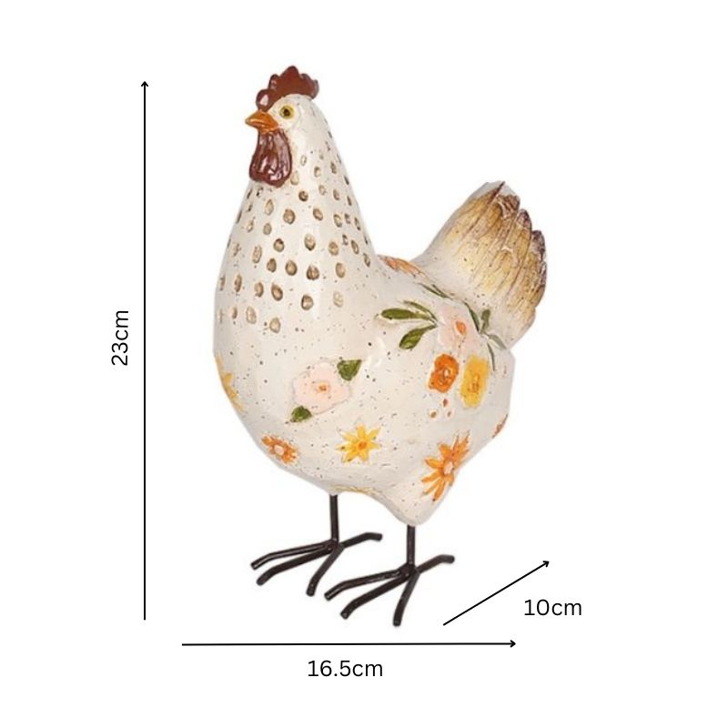 White Chook W Flowers Ornament 23cm
