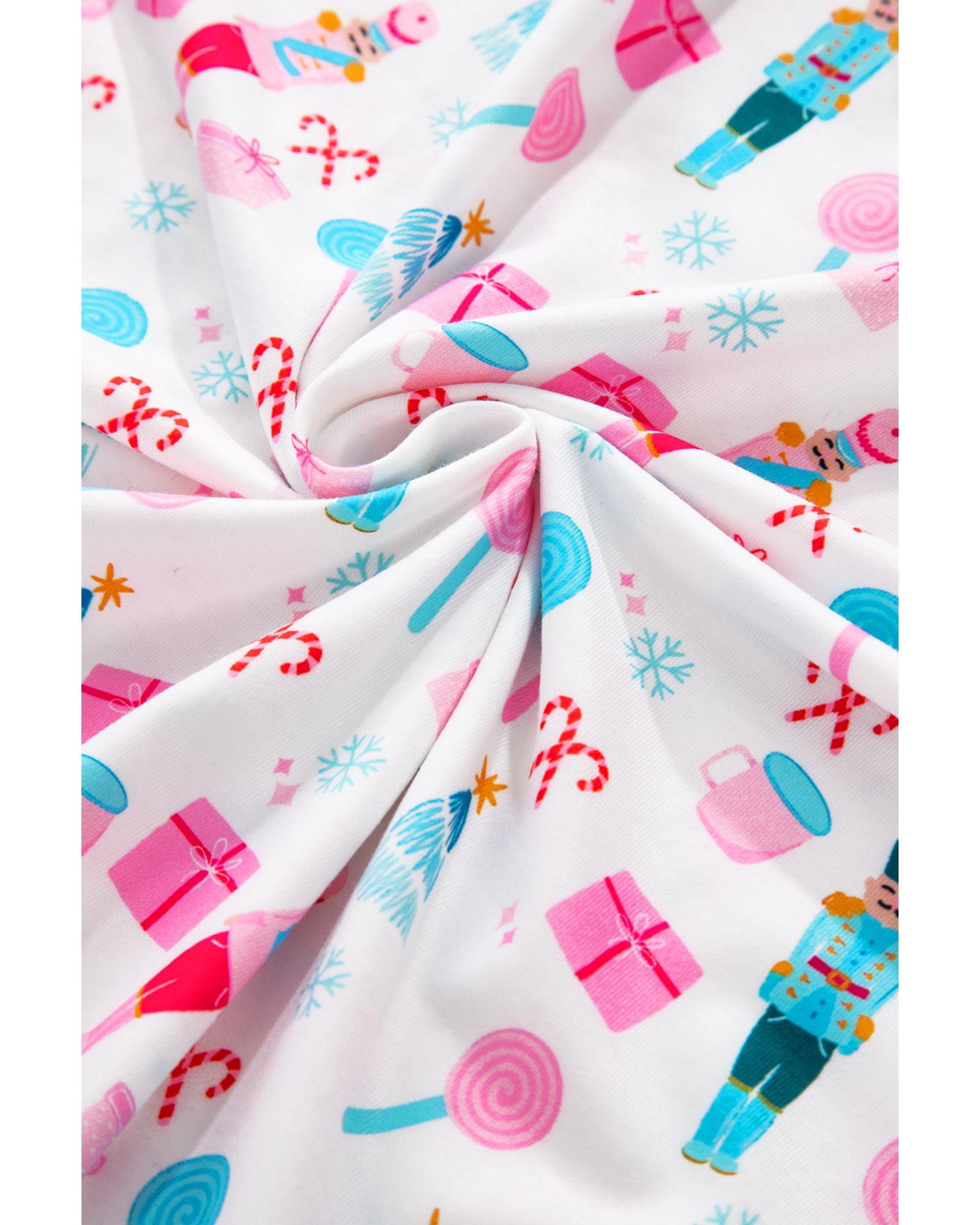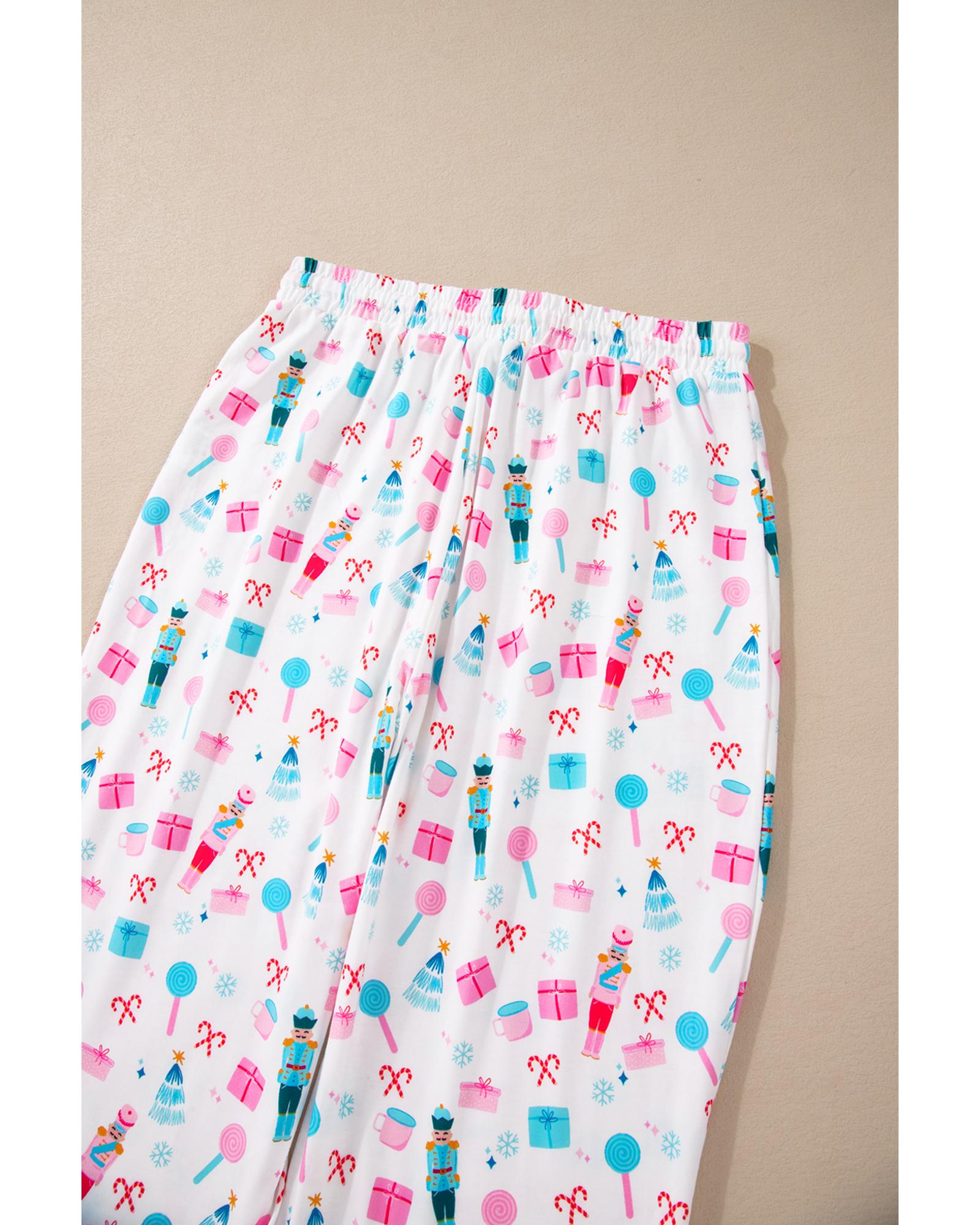 White Christmas Pattern Long Sleeve Top and Wide Leg Pants Set - XL
