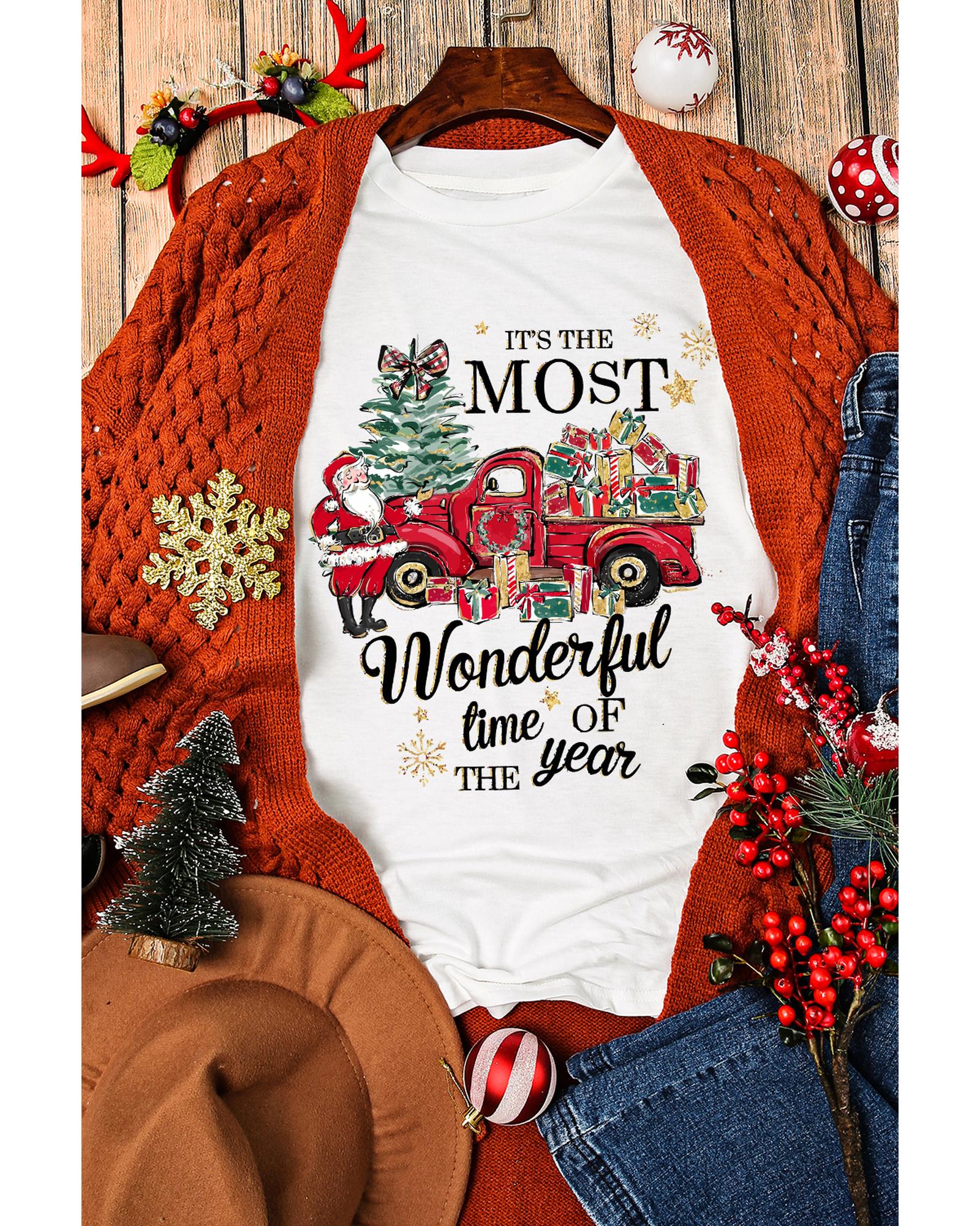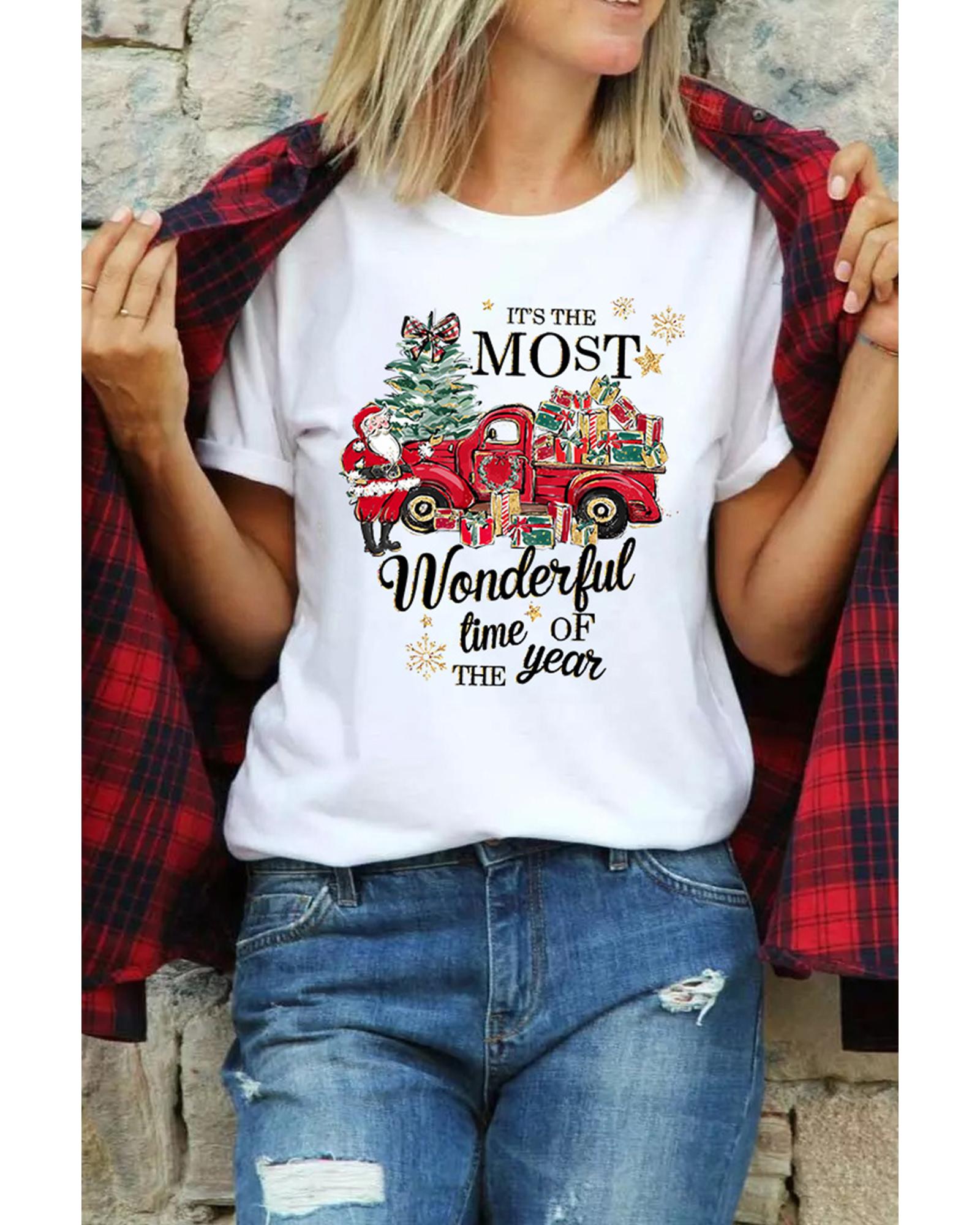 White Christmas Pattern Slogan Print Crew Neck T Shirt - XL