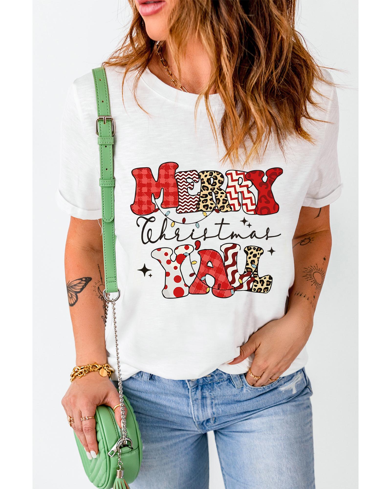 White MERRY Christmas YAll Graphic Crewneck T Shirt - 2XL