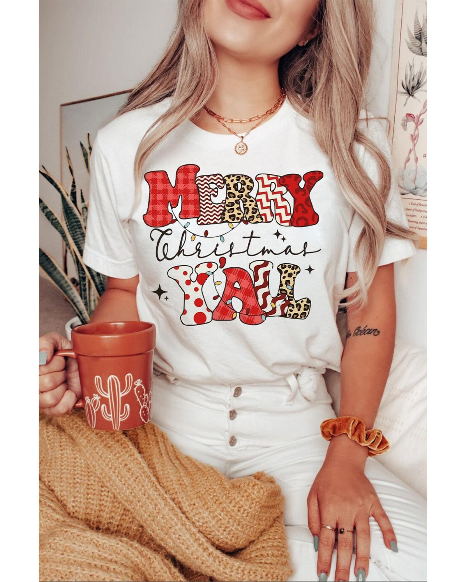 White MERRY Christmas YAll Graphic Crewneck T Shirt - XL