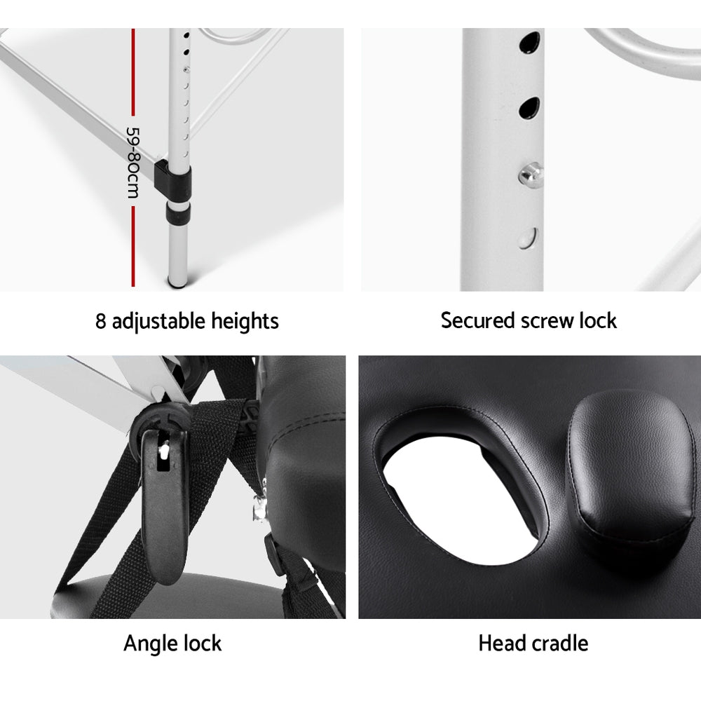 75cm Professional Aluminium Portable Massage Table - Black