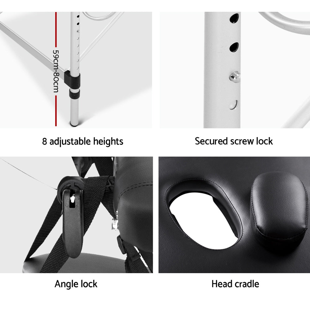 Zenses Massage Table 75cm Portable 3 Fold Aluminium Beauty Bed Black